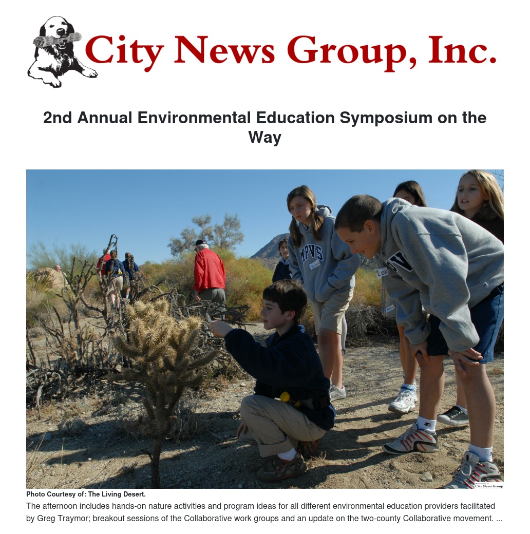 Connecting youth to the environment can be the most important and fundamental way communities teach environmental literacy and stewardship. To that end, a group of non-profit, public school, agency and parks’ environmental education providers from Riverside and San Bernardino are holding the 2nd Annual Environmental Education Symposium "The Changing Environment in Environmental Education".
