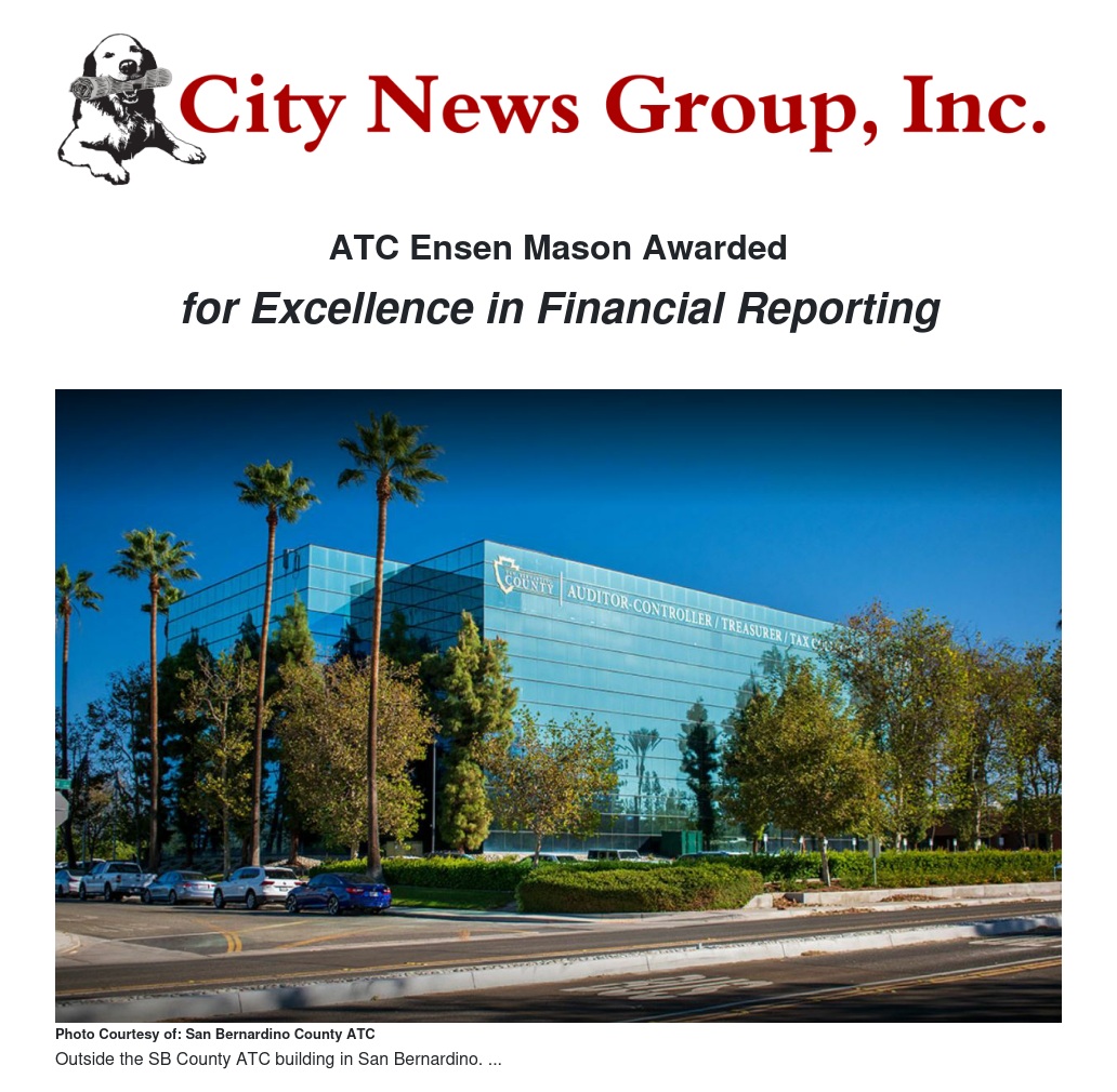 These major awards reflect the outstanding professionalism and commitment of ATC staff. This recognition supports the Countywide Vision and helps carry out the Board of Supervisors’ commitment to sound and conservative administration of the County’s finances through recognition of ATC as the enterprise financial foundation of San Bernardino County government.