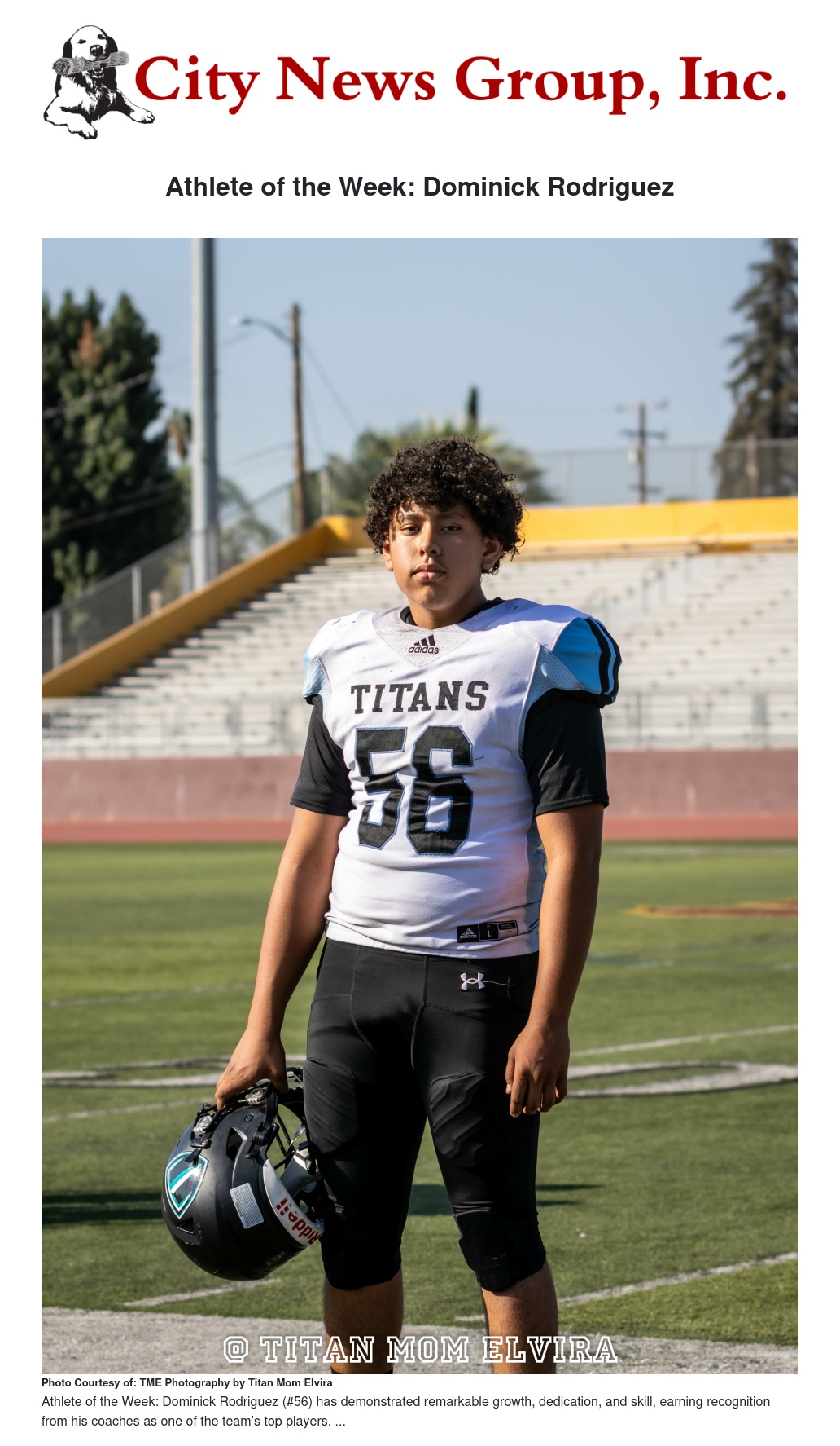 With two more years of high school ahead, the future looks bright for this determined Titan. We wish Dominick all the best as he continues to chase his dreams, the best is yet to come!