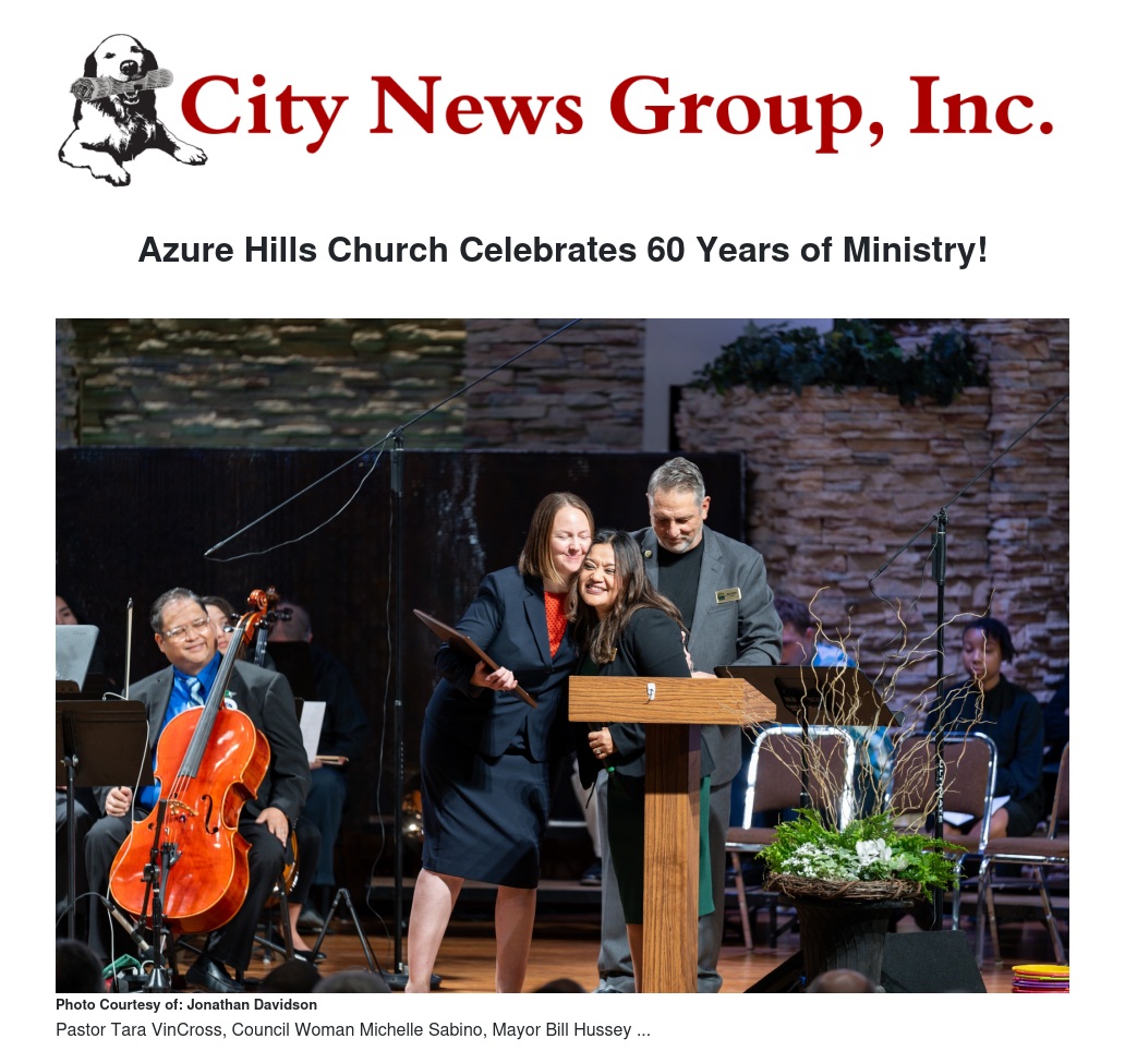 Throughout the weekend, Azure Hills celebrated God’s faithfulness, community impact, and commitment to welcoming all. “We are so grateful to Dr. Andy Sandiford and the Anniversary Planning Committee, who did a fantastic job organizing this weekend,” said Pastor Tara VinCross. “We are eager to see all that God will do in the years to come as we pursue Jesus, committed to loving our neighbors in Grand Terrace and beyond.”