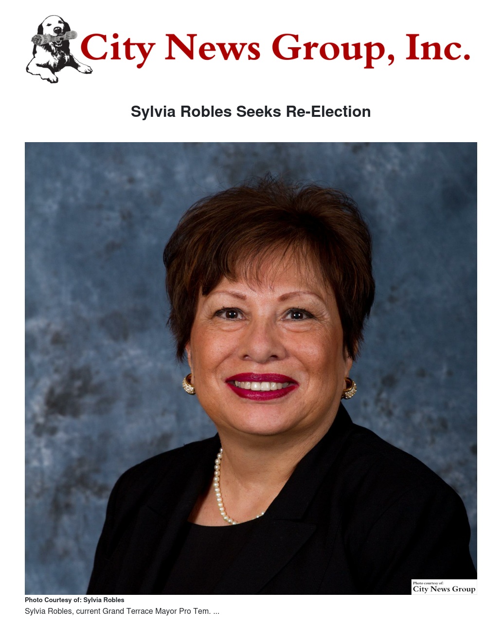 Robles was elected to the Grand Terrace City Council in November 2012 and has continued her role as Mayor Pro Tem. Now, she is seeking re-election.