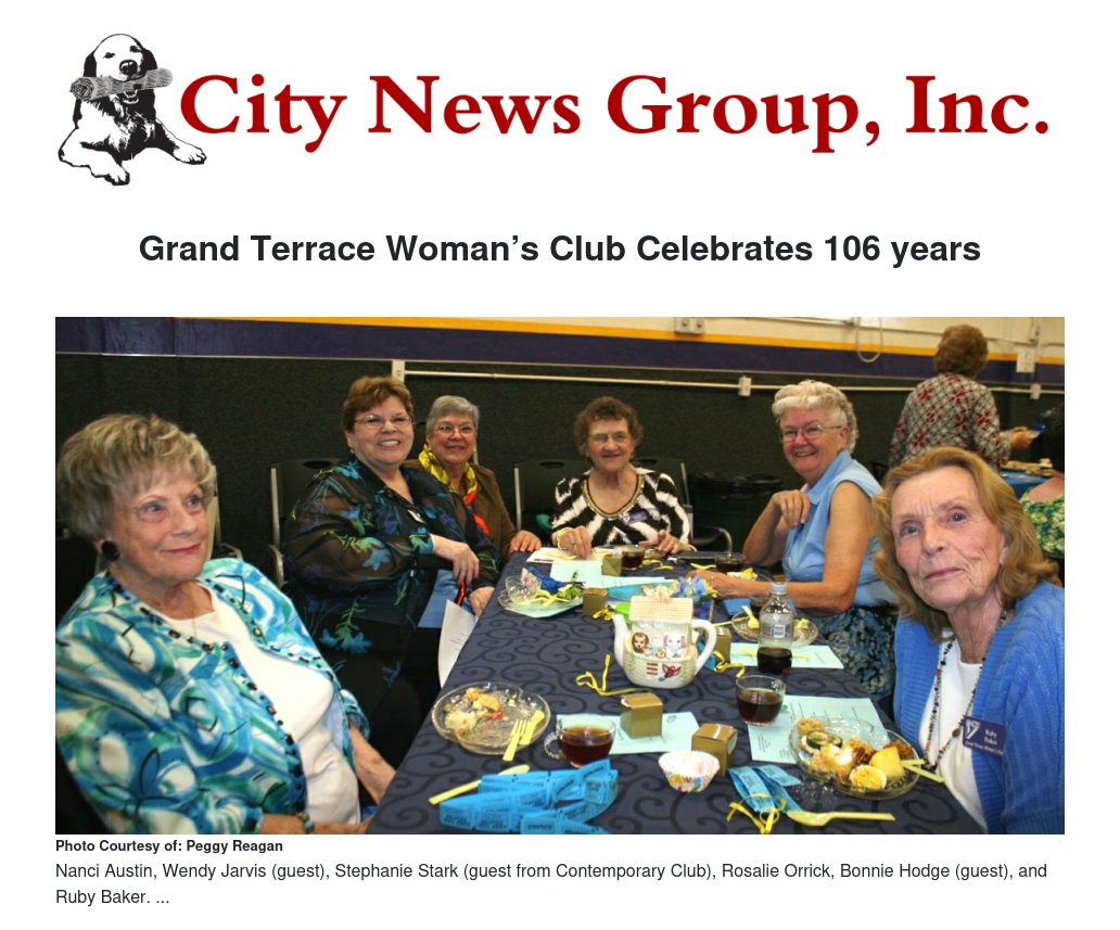 While the work of the General Federation continues in many areas today, the members of the Grand Terrace Woman’s Club actively support the community. Since the founding of the club in 1908, GTWC has reached many milestones.