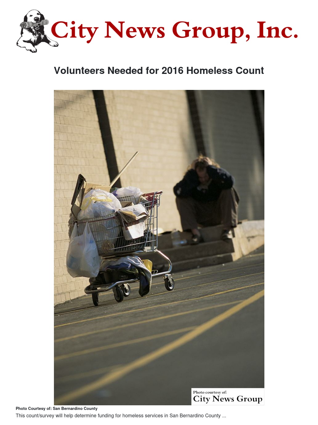 Go to www.sanbernardinocountyhomelesscounts.com for more information and to register to volunteer.