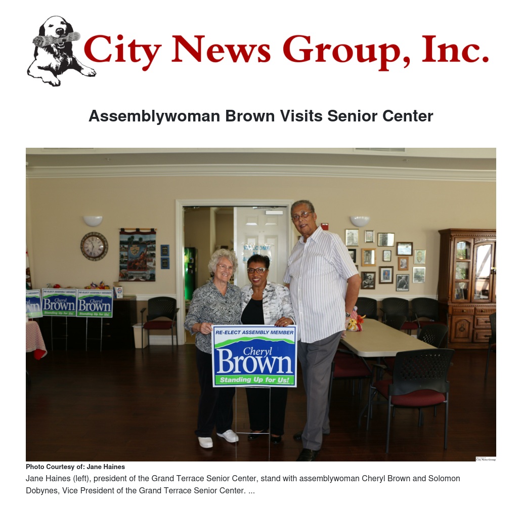 GRAND TERRACE>> On Friday, Sept. 16 Assemblywoman Cheryl Brown, of the 47th District, visited the Grand Terrace Senior Center to speak with seniors at the center.