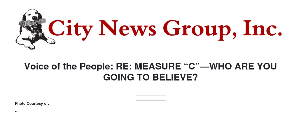 Voice of the People: RE: MEASURE “C”—WHO ARE YOU GOING TO BELIEVE?