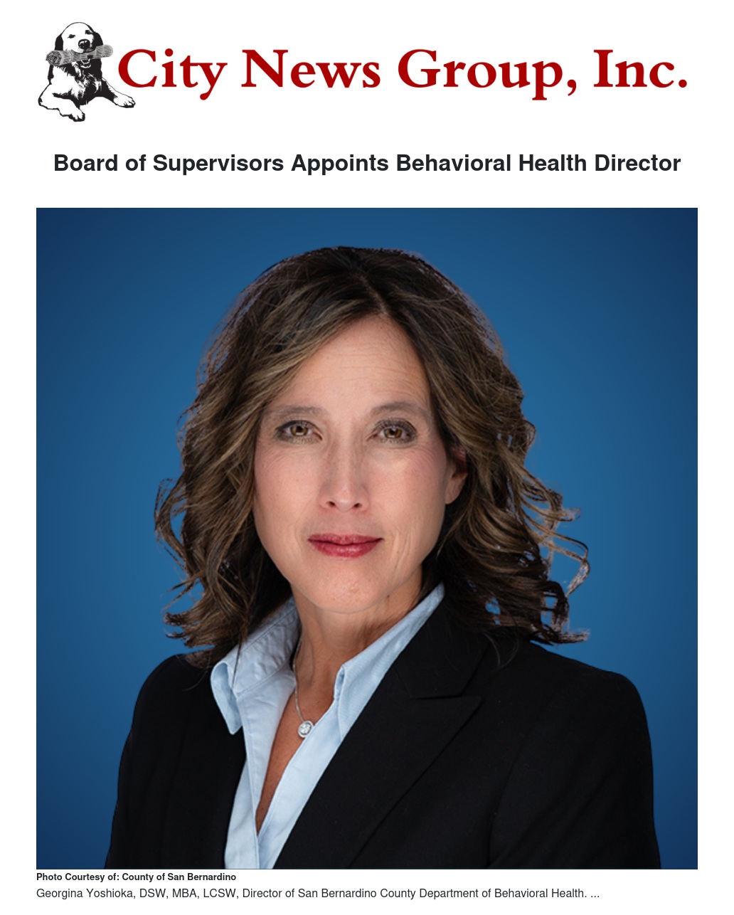 Board of Supervisors Appoints Behavioral Health Director by Alex Turner - City News Group, Inc.