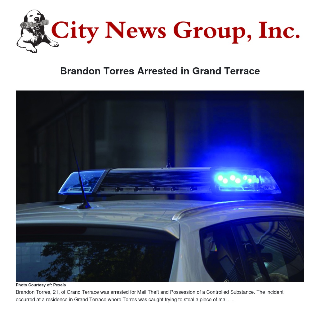 Brandon Torres Arrested in Grand Terrace