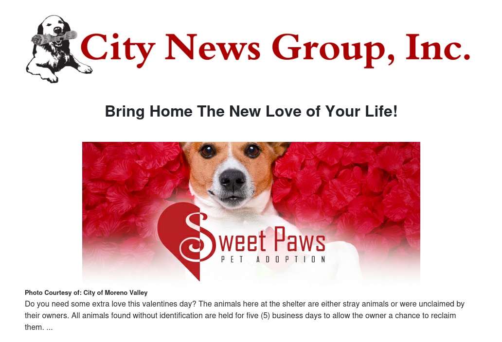 Adopt a pet from the Moreno Valley Animal Shelter, and find your Paw-lentine this February!