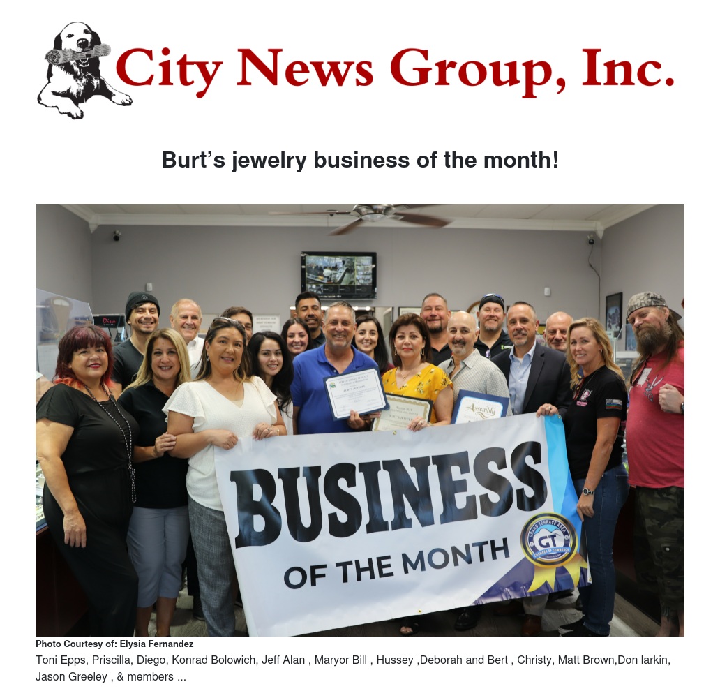 Burt’s jewelry business of the month! by Elysia Fernandez - City News Group, Inc.