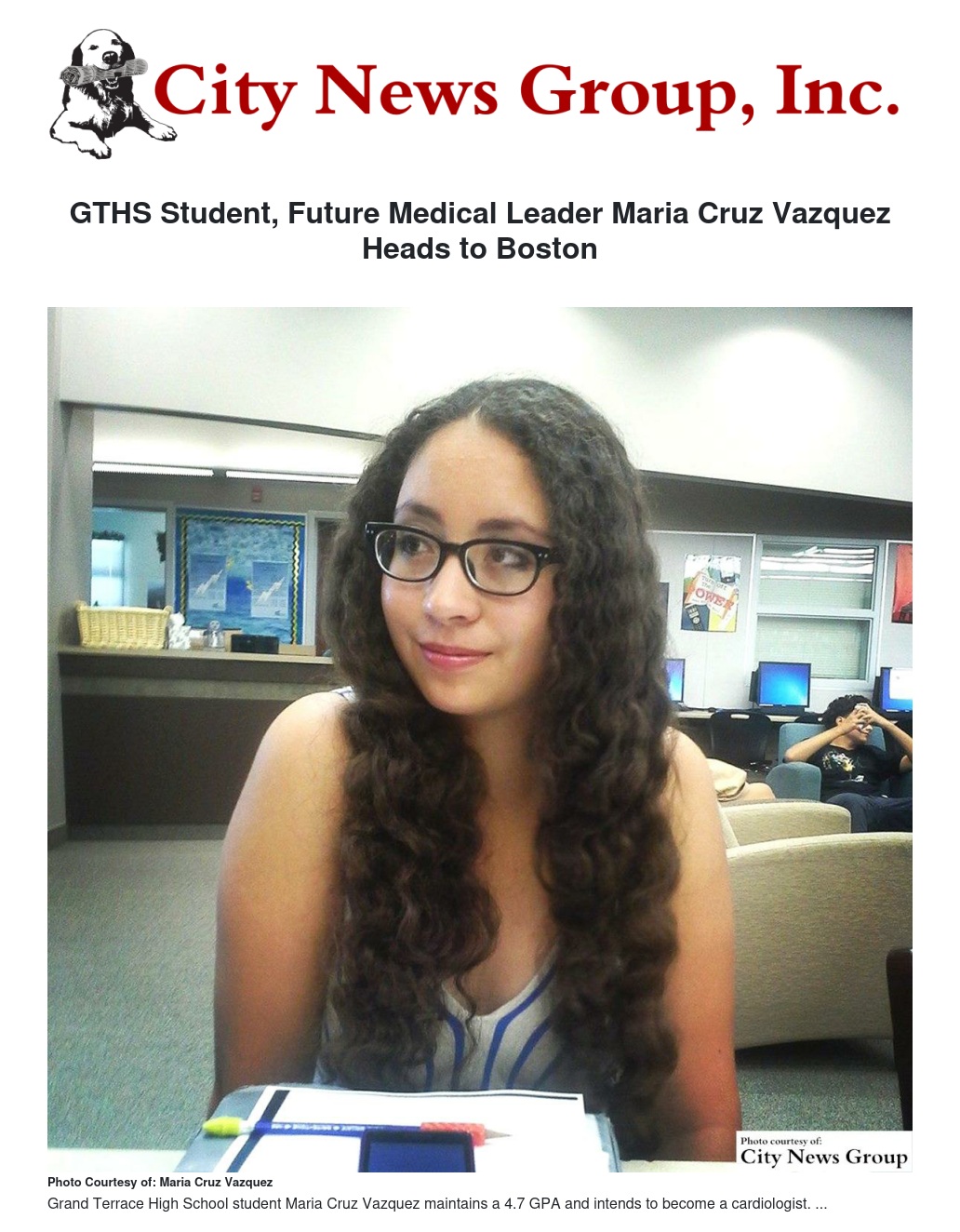 GTHS Student, Future Medical Leader Maria Cruz Vazquez Heads to Boston
