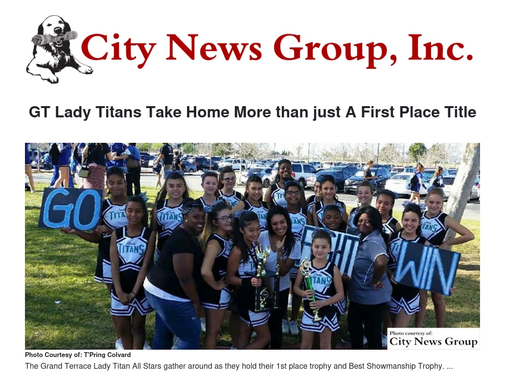 The Grand Terrace (GT) Lady Titans are on the road to more and more success. They recently took home first place in their division at the Sharp International Competition that was held at Vista Del Lago High School in Moreno Valley on Sunday March 8 as well as the Best Showmanship Trophy.