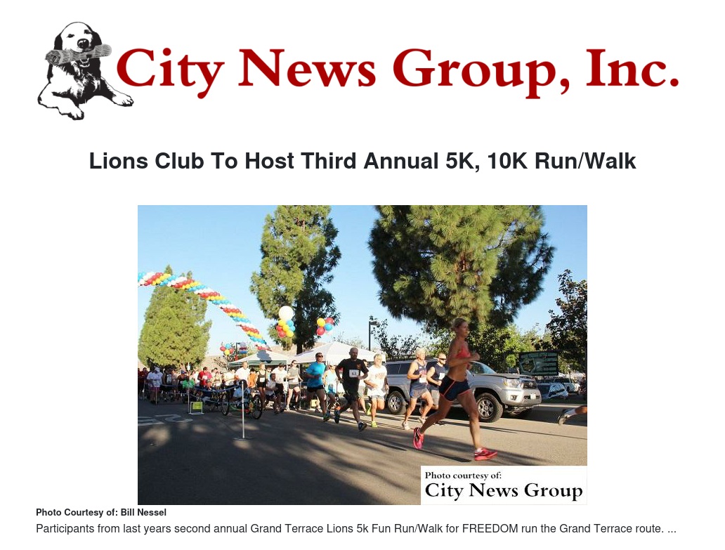 GRAND TERRACE>> Residents are invited to get out their running shoes and join the third annual Grand Terrace Lions 5k and 10k Fun Run/Walk for FREEDOM Sept. 25 at Pico Park.