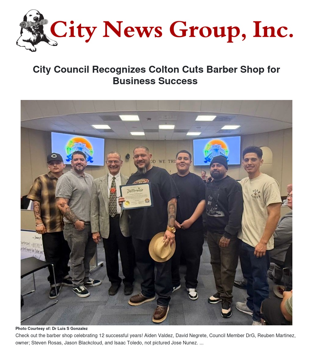 City Council Recognizes Colton Cuts Barber Shop for Business Success  by Dr Luis S Gonzalez - City News Group, Inc.