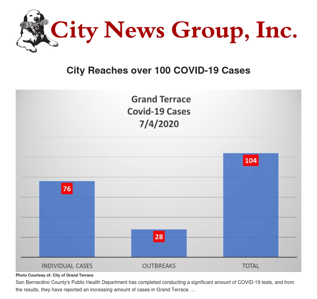 City Reaches over 100 COVID-19 Cases by City of Grand Terrace - City News Group, Inc.