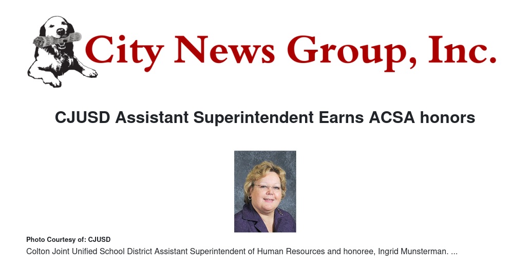 Congratulations to Colton Joint Unified School District Assistant Superintendent of Human Resources Ingrid Munsterman, who has been named the ACSA (Association of California School Administrators) Region 12 Human Resources Administrator of the Year! Mrs. Munsterman was honored Monday, Dec. 14 during a virtual award ceremony.