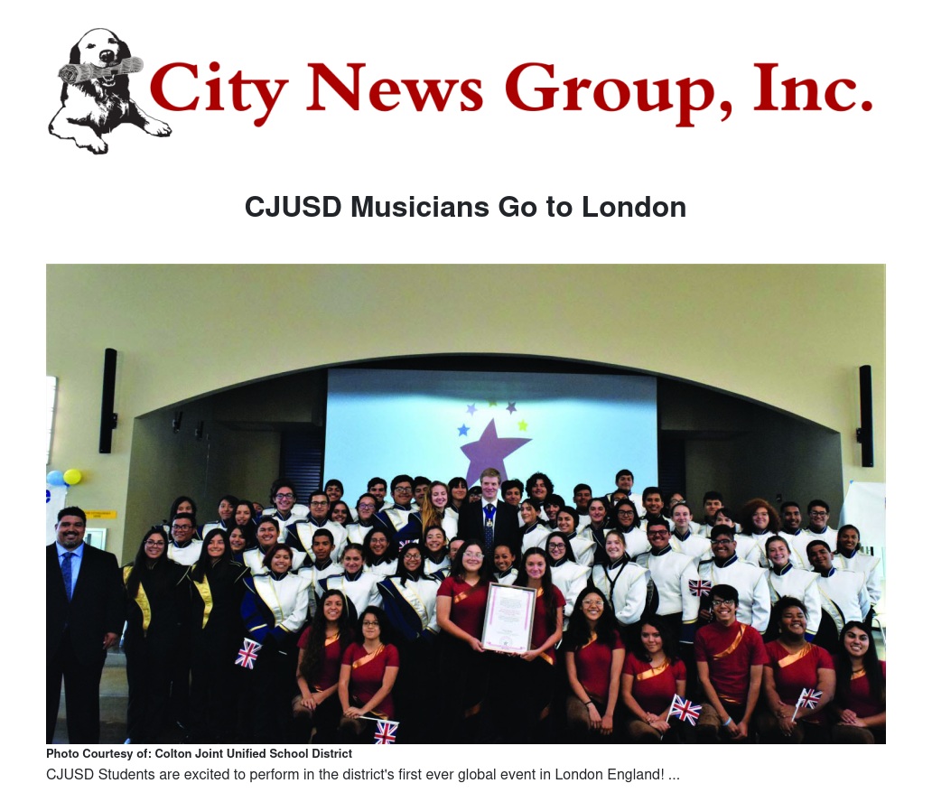CJUSD Musicians Go to London by Jacqueline Paul - City News Group, Inc.