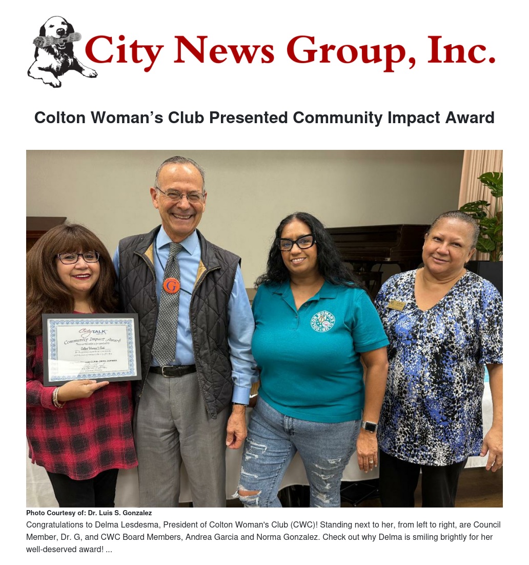 Colton Woman’s Club Presented Community Impact Award by Nick Zupkofska - City News Group, Inc.