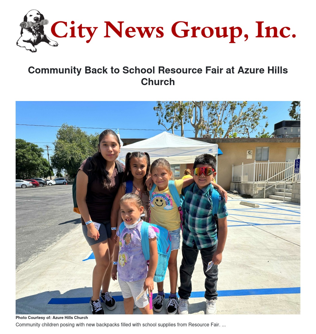 The remaining backpacks and school supplies from the event were donated to local students. Azure Hills Church also donated clothing and supplies to an organization in Tijuana, Baja Mexico, with whom they partner with.