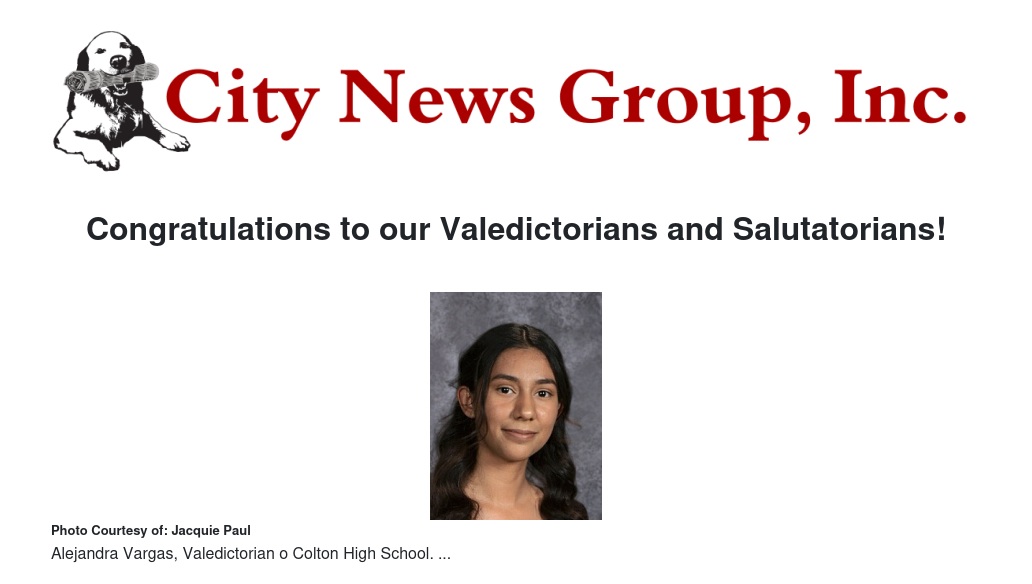 Colton High School Valedictorian Alejandra Vargas earned a GPA of 4.725 and plans to attend UCLA in the fall. After earning a Bachelor's degree, Alejandra will enroll in medical school to pursue a career as an anesthesiologist.