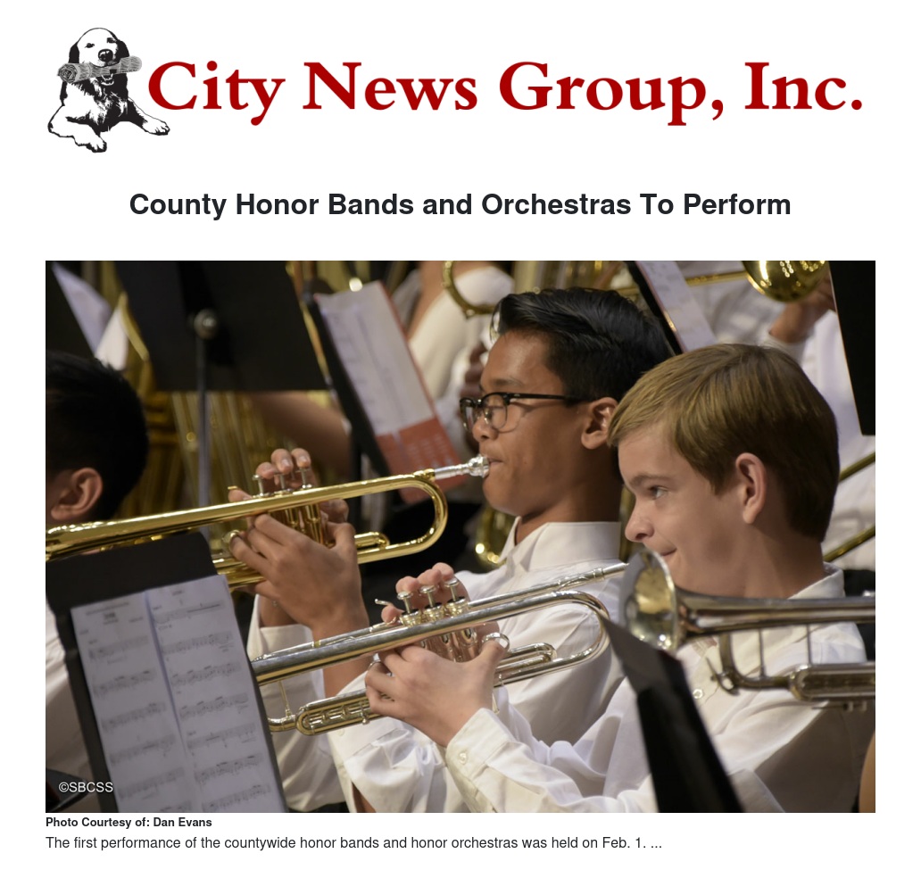 In February and March, two regional San Bernardino County honor bands and a countywide orchestra will hold their annual performances.