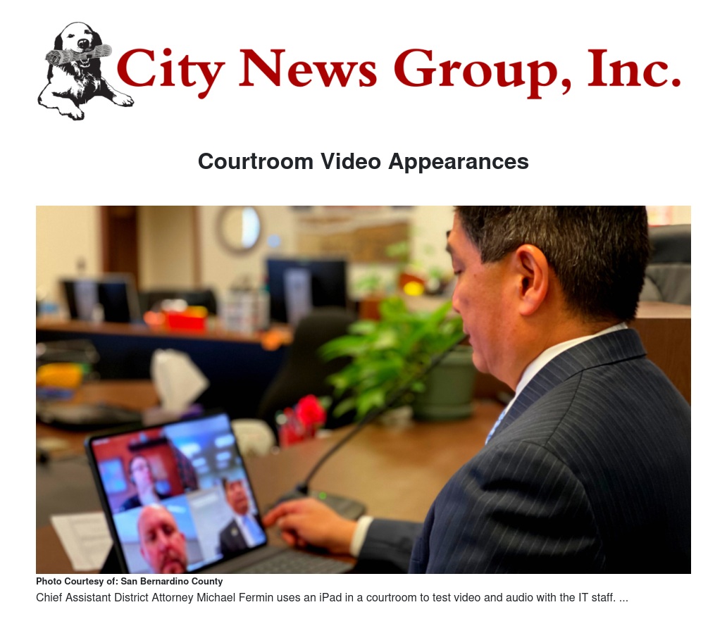 Courtroom Video Appearances by San Bernardino County District Attorney's Office - City News Group, Inc.