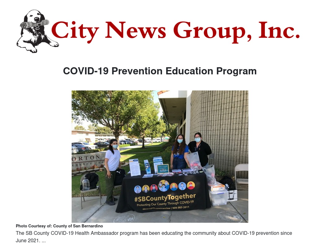 COVID-19 Prevention Education Program by County of San Bernardino - City News Group, Inc.