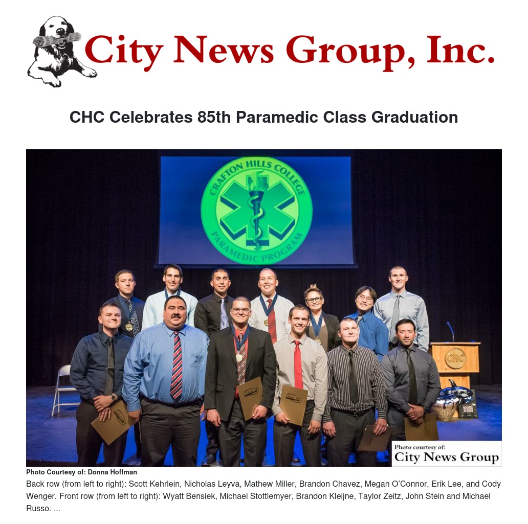 REDLANDS>> After completing a 10-month paramedic program, 15 graduates graduated from Crafton Hills College July 14, making it the college's 85th class to graduate.