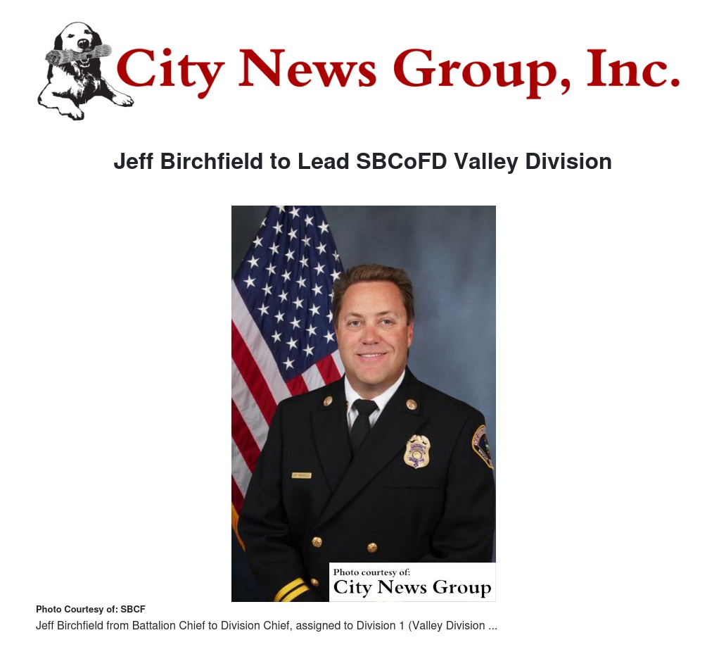 Jeff Birchfield to Lead SBCoFD Valley Division