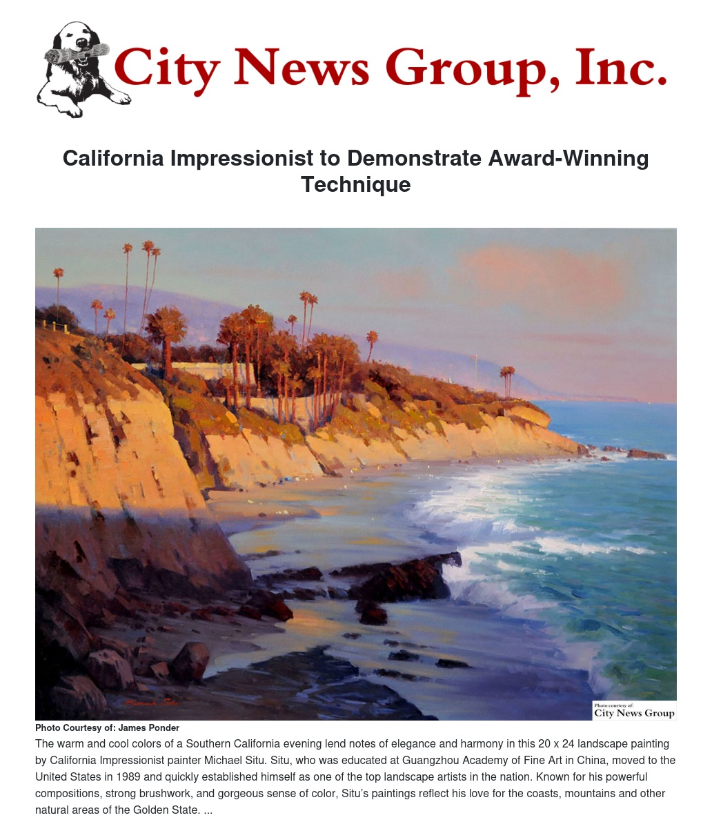 LOMA LINDA >> Michael Situ, widely regarded as one of the finest contemporary painters working in the California Impressionist style, will demonstrate his painting techniques and talk about his passion for the landscapes of the Golden State at the Aug. 7 meeting of the Loma Linda Cultural Arts Association.
