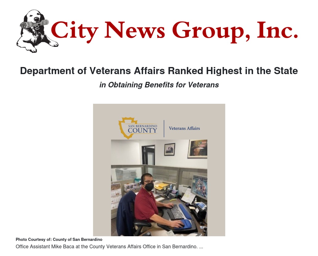 Department of Veterans Affairs Ranked Highest in the State by County of San Bernardino - City News Group, Inc.
