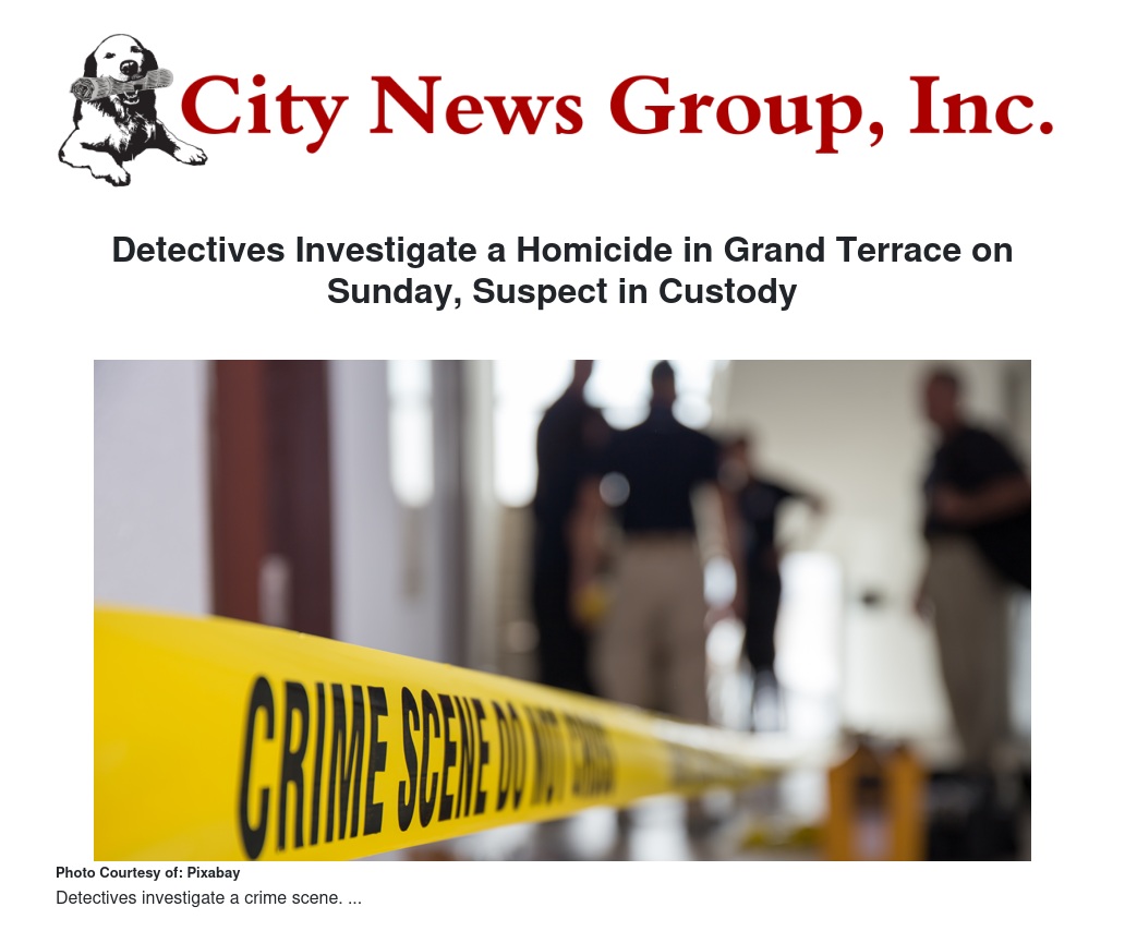 Detectives Investigate a Homicide in Grand Terrace on Sunday, Suspect in Custody