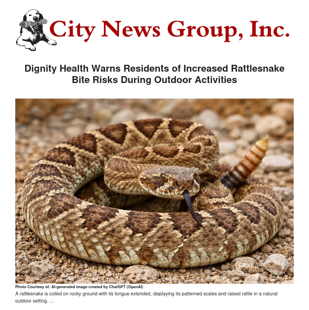 Dignity Health Warns Residents of Increased Rattlesnake Bite Risks During Outdoor Activities by William Cortez - City News Group, Inc.