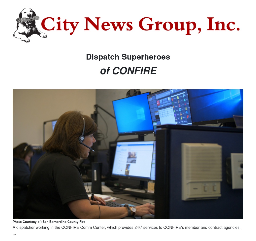CONFIRE's dispatchers have a special superpower of being the real first responders via telecommunications. Each year, CONFIRE dedicates the second full week of April to those who serve as public safety dispatchers and communications personnel. San Bernardino County Fire honors the dedicated dispatchers of the Consolidated Fire Agencies of San Bernardino County (CONFIRE) who serve as the first responders when county residents and visitors dial 9-1-1.