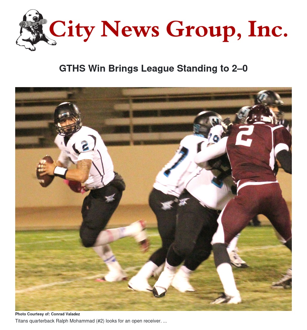 History was made once again last Friday night, when the Grand Terrace High School (GTHS) Titans recorded their first road victory in school history against Fontana High School with a final of 28–21, bringing Grand Terrace’s current record to 4–3 overall and 2–0 in the Sunkist league play.