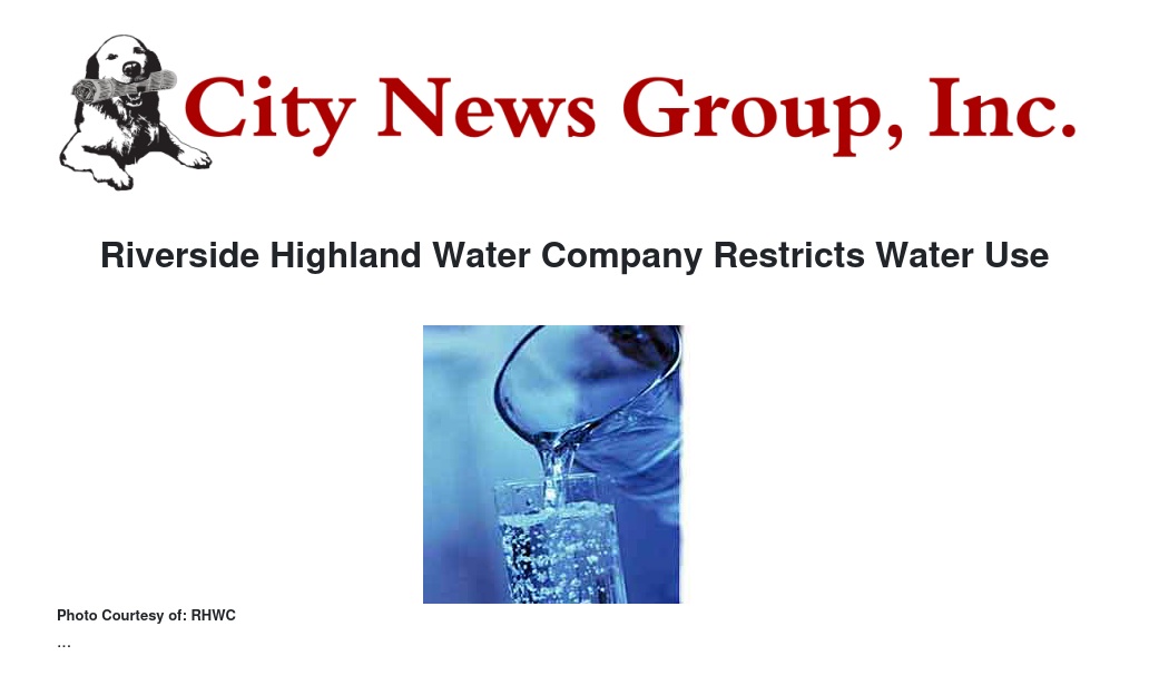 "We at Riverside Highland Water Company believe that through education and communication, our customers will understand the seriousness of the situation and come together to save water for the benefit of our community’s future," said company officials.