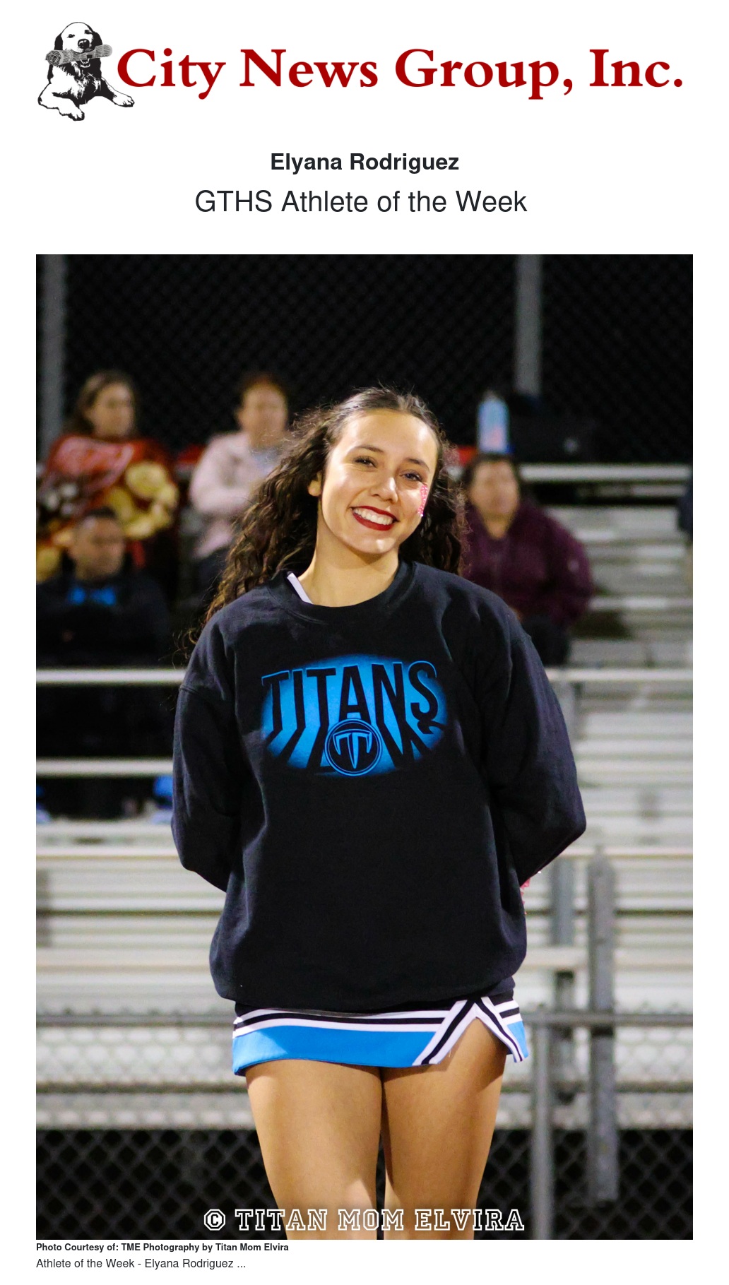 Elyana’s passion for cheerleading spans over a decade, while she has recently ventured into track and field. Her hobbies include working out, volunteering at her church and local events and a love for running. Look out for her and the entire Titan Pep Squad at the upcoming Light Up Grand Terrace on November 30, 2023.