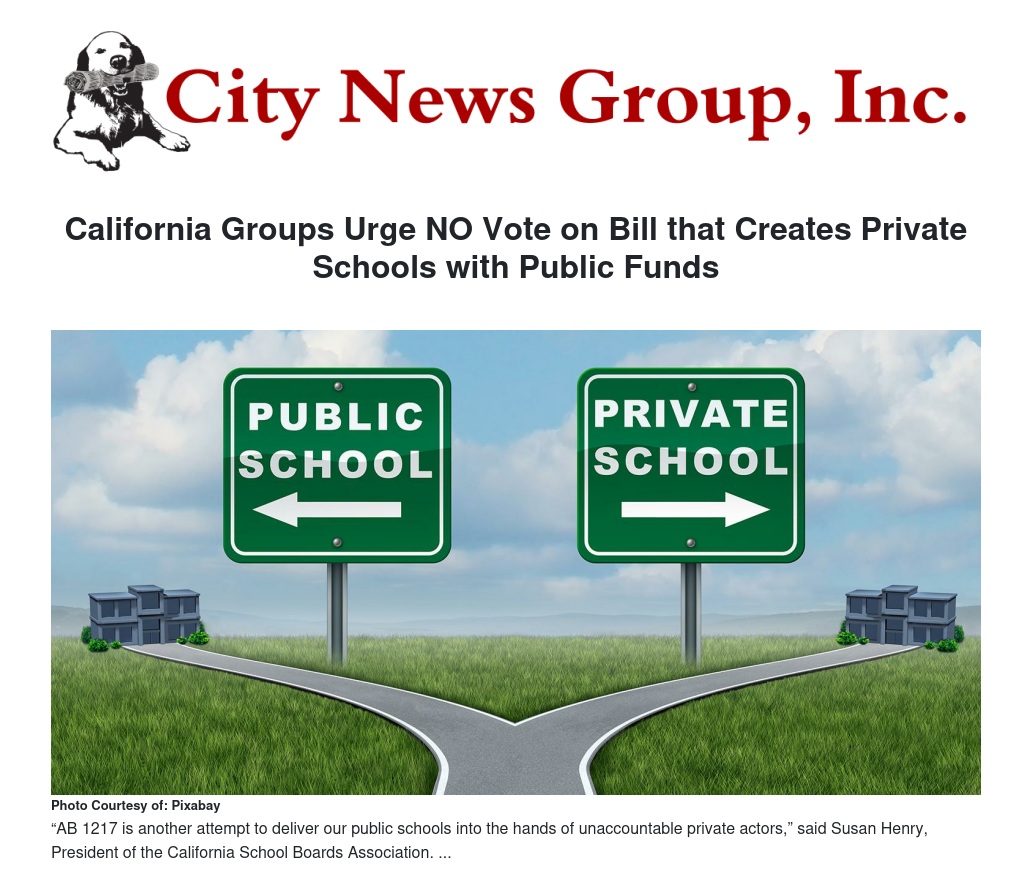 California Groups Urge NO Vote on Bill that Creates Private Schools with Public Funds by Erika Sizemore - City News Group, Inc.