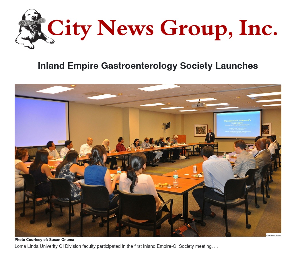 LOMA LINDA>> The first Inland Empire-GI Society meeting was held Aug. 18 at the Riverside Medical Clinic and Medical Center in Riverside, California, with visiting professor, Prasad G. Iyer, MD, MS, FACG of the Mayo Clinic, Rochester, Minn.