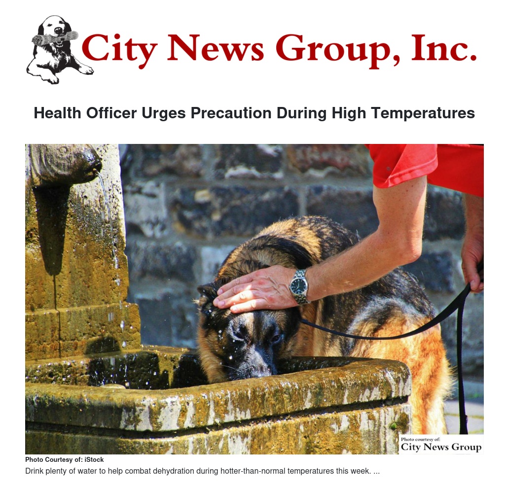 County residents may experience increased temperatures 10 to 15 degrees above normal for this time of year. The County Health Officer Dr. Maxwell Ohikhuare has issued a heat advisory recommending residents to take precautions that will help prevent heat-related illness.