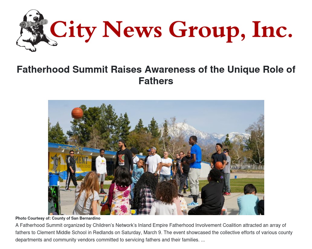 A Fatherhood Summit organized by Children’s Network’s Inland Empire Fatherhood Involvement Coalition attracted an array of fathers to Clement Middle School in San Bernardino County on Saturday, March 9. The event showcased the collective efforts of various county departments and community vendors committed to servicing fathers and their families.