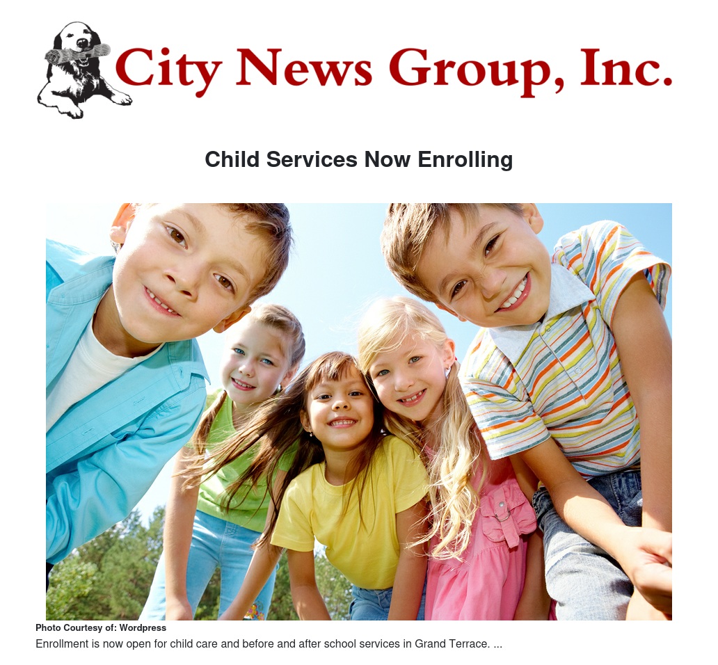 For more information, you may call Grand Terrace's Child Care Services at 909-783-0994.