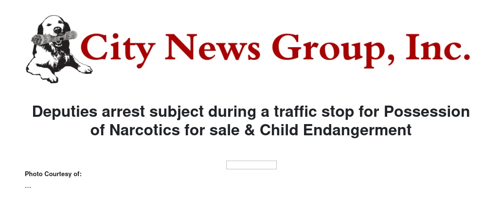 Deputies arrest subject during a traffic stop for Possession of Narcotics for sale & Child Endangerment by San Bernardino Sheriff's Department - City News Group, Inc.