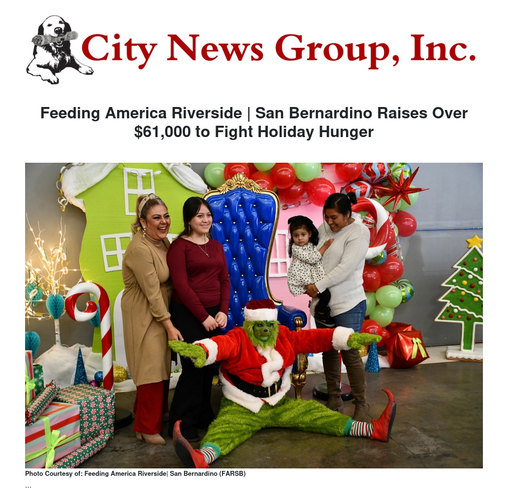 Feeding America Riverside | San Bernardino Raises Over $61,000 to Fight Holiday Hunger by Ruby Stephenson - City News Group, Inc.