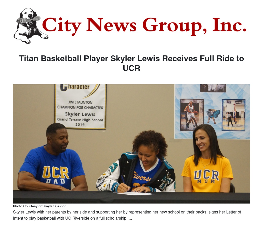 Lewis will be attending UC Riverside to start her college basketball career in 2015.