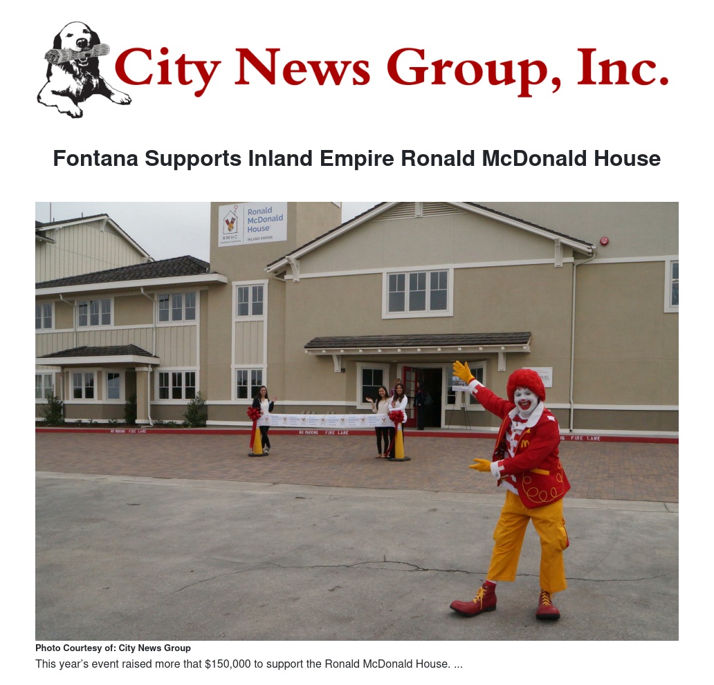 Fontana Supports Inland Empire Ronald McDonald House by Hattie Strong - City News Group, Inc.
