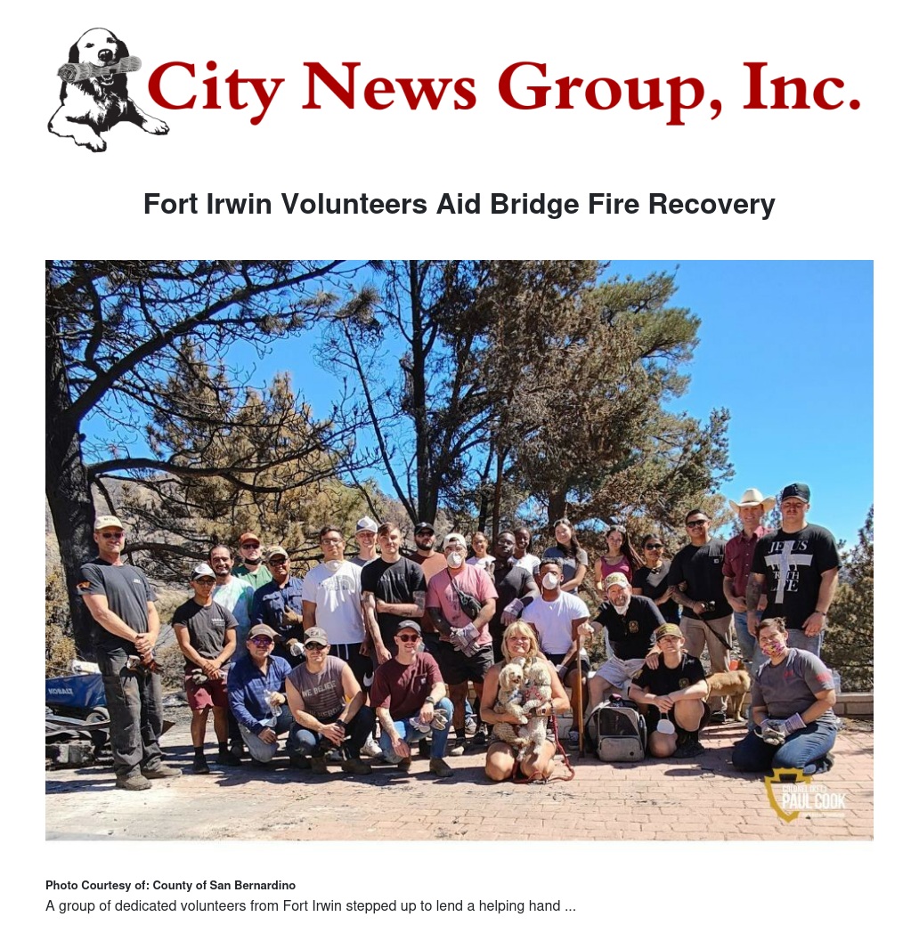 The aftermath of the Bridge Fire left a trail of destruction in the Wrightwood community. Amidst the devastation, a group of dedicated volunteers from Fort Irwin stepped up to lend a helping hand.
