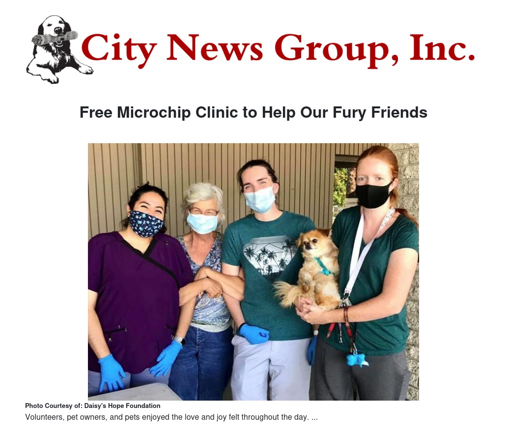 The Daisy’s Hope Foundation and Dream Team Angels Rescue are planning on holding another free microchip clinic in December so that the animals will be chipped before the New Year fireworks.