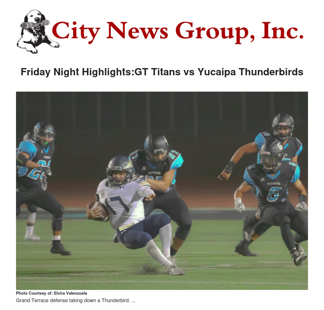 Friday Night Highlights:GT Titans vs Yucaipa Thunderbirds by Francisco Valenzuela Jr - City News Group, Inc.