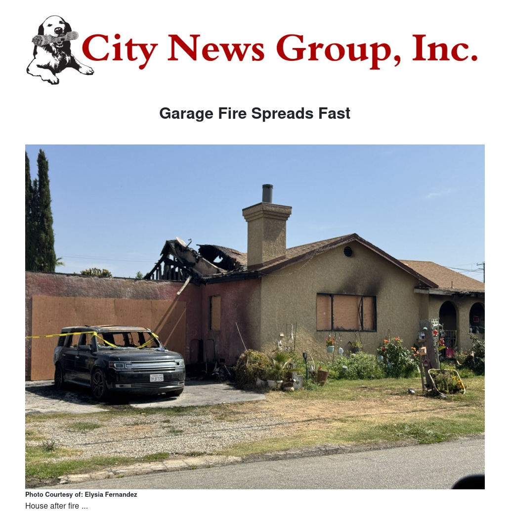Garage Fire Spreads Fast by Ruby Stephenson - City News Group, Inc.