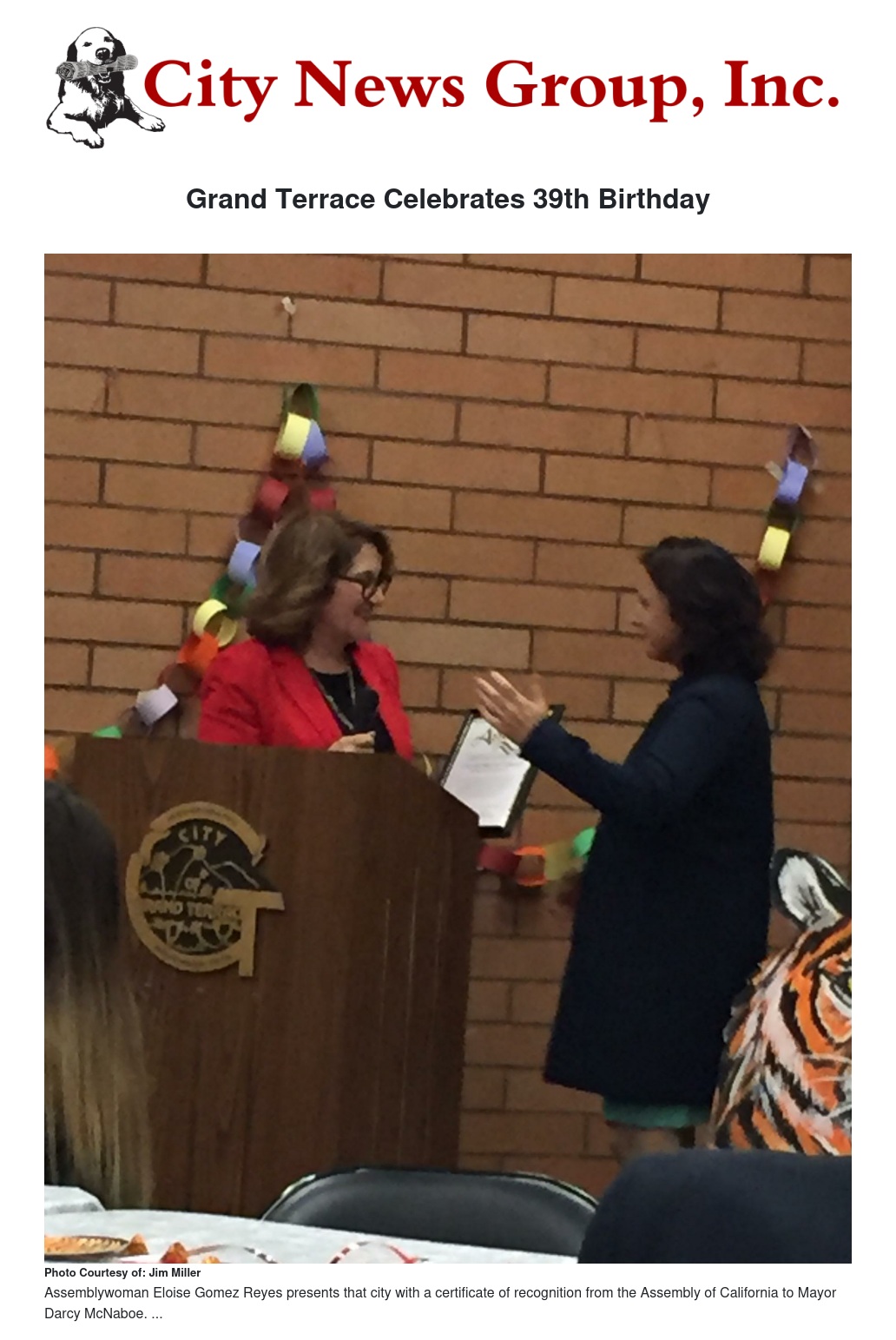 Grand Terrace Celebrates 39th Birthday by Jim Miller - City News Group, Inc.